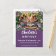 Sur cette carte postale d'invitation à la fête d'anniversaire sur le thème du hamster, deux adorables hamsters syriens dorés sont prêts à fêter un anniversaire spécial. Les hamsters sont nichés dans une verdure luxuriante et de délicates fleurs violettes et ballons flottant doucement dans l'arrière - plan chaud et éclairé par le soleil. Les hamsters fêtent avec un gâteau d'anniversaire succulent orné d'une épaisse glace crémeuse et des arrosées colorées, surmontées de bougies brillantes prêtes à l'anniversaire.généreux contenu