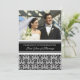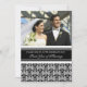 Carte d'invitation de mariage personnalisée avec photo pour le premier anniversaire de mariage dans un élégant motif floral classique en noir et blanc damassé, délicat et moderne. Personnalisable avec les détails de votre fête et votre propre photo.