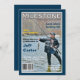 Invitation à la fête d'anniversaire de style magazine, avec le sous-titre "célébrer les moments spéciaux de la vie! Bordure bleu foncé autour de la zone photo. Également disponible dans d'autres couleurs. Ajoutez votre propre photo comme image de couverture, et modifiez les informations dans l'espace fourni. Cliquez sur "customiser" pour modifier les couleurs de police ou de texte ou pour ajuster le placement du texte. Contactez-nous à funt-shirts@hotmail.com pour toute demande personnalisée.
