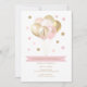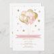 Invitation de fête d'anniversaire rose et or pour fille, conçue pour un 4e anniversaire mais pouvant être éditée pour n'importe quel âge. Le design se compose de ballons de parties scintillant dorés et roses brillants. Le design est composé de confettis roses et or autour des ballons. L'invitation peut être customisée avec les détails de votre petit.