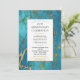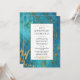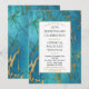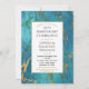 Une invitation d'anniversaire élégante avec un marbre bleu-vert riche rehaussé d'or et un cadre doré.