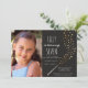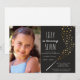 Invitation tous vos amis à votre fête magique amusante avec ces invitations de grande fête avec arrière - plan noir et faux foil or stars. Idéal pour les fêtes magiques, les fêtes Harry Potter ou les fêtes d'anniversaire à thème magicien. Il y a un espace pour une photo.