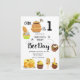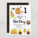 Honey Bee-day Invitations avec une illustration d'abeilles miel et des fleurs sur un modèle motif de nid d'abeille. Personnalisez facilement avec vos propres détails.