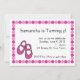 Ces invitations de fête d'anniversaire ont des chaussures roses douces et une bordure en bulle rose vif. Correspond à notre ligne de faveurs fête d'anniversaire sur GCDSpa.com. Des autocollants et des affiches sont également disponibles.