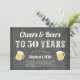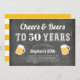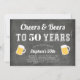 Célébrez son anniversaire de milestone avec ces invitations de fête festives avec "à la santé et à la bière pour XX ans" en lettres blanches sur un fond de tableau noir brossé orné de deux illustrations de chope à bière. Personnalisez avec les détails de votre fête ci-dessous. Exemple montré pour un 50e anniversaire.