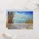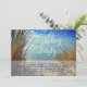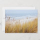 Modèle d'invitation à une fête d'anniversaire sur les dunes de la plage pour hommes ou femmes qui aiment l'océan. Personnalisez le texte à deux endroits avec un grand script en haut - exemple, «Fête d'anniversaire», et le texte imprimé en bleu en bas. Le design est une photo de plage avec un chemin sablonneux entre les dunes herbeuses menant à une mer calme. Le verso comporte également une image de dunes marines.