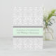 Carte d'invitation pour les 20 ans de mariage dans un élégant vert menthe pastel clair, gris et blanc avec un motif classique romantique floral damassé vintage, délicat et contemporain. Personnalisable avec les détails de votre fête.