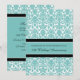 Carte d'invitation de fête d'anniversaire de mariage de 25 ans en élégant damas floral moderne bleu turquoise, noir et blanc, délicate et contemporaine. Personnalisable avec les détails de votre fête.