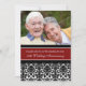 Carte d'invitation personnalisée pour une fête d'anniversaire de mariage de 50 ans en élégant motif damassé floral classique rouge cramoisi, noir et blanc, délicat et moderne. Personnalisable avec les détails de votre fête et votre propre photo.