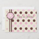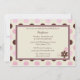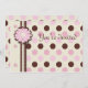 Cette invitation de fête d'anniversaire de 5x7 pour les filles a des pois roses et bruns avec une bordure en ruban de couleur brune et crème. Il y a une fleur faite de "papier" fleuri au-dessus du ruban. A l'arrière, une bordure de polkadot avec un centre crème agrémenté de quelques fleurs. Vous pouvez facilement customiser vos informations de fête.
