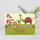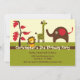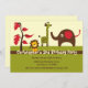 L'invitation pour la fête d'anniversaire de ce garçon de 5x7 a un thème rétro moderne et vintage animal. Il y a un lion, une girafe et un éléphant au-dessus de vos informations de fête facilement personnalisables. Copyright revidevi http://www.revidevi.com