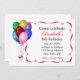 Invitation de fête d'anniversaire aux ballons de couleurs vives. Le texte est personnalisable.