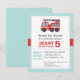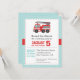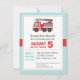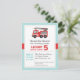 Faites monter les enfants invités pour la fête avec cette invitation de fête d'anniversaire de camion feu rouge! L'invitation vient avec un camion de feu rouge qui a des rayures blanches sur son côté et une échelle rétractable avec tuyau. Un motif à rayures bleu clair pour arrière - plan. Une palette de couleurs rouge, blanc, bleu et gris. Personnalisez facilement avec les détails de votre fête.