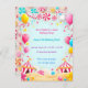 Rendez le grand jour de votre enfant encore plus doux avec cette invitation d'anniversaire amusante et colorée sur le thème de la fête foraine ! Conçue avec une palette pastel ludique et remplie de sucettes, de gâteaux et de pop-corn, cette invitation fait revivre toute la magie d'une fête foraine. Le devant présente une bordure de bonbons festive avec un espace pour les détails de votre fête, tandis que le dos présente un motif de friandises appétissantes pour une finition fantaisiste.
