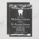 Une amusante invitation d'anniversaire dentaire en tableau noir et blanc avec des lumières brillantes au sommet.