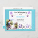 Un design amusant avec une jeune fille à vélo violet sur un sentier de campagne. Deux autres vélos violets avec une bordure à motifs, des ballons et des cupcakes qui accentue votre anniversaire.