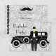 Invitation à la fête de Bachelor Party Gatsby de style vintage avec automobile ancienne et marié.