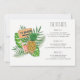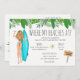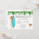 L'invitation à la fête de la plage de la bachelorette tropicale présente une fille blonde couleur eau en maillot de surf et des fleurs tropicales. Détails de l'événement au verso de l'invitation. Peut être customisé pour tout événement.