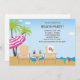 Une invitation à la plage moderne et amusante. Elle est équipée de deux transats, d'un parasol coloré et de boissons tropicales sous des palmiers balançoires. Quelques éléments corazondulce.etsy.com