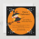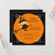 Commencez votre fête d'Halloween avec notre joli costume de sorcière Halloween Invitation pour les enfants avec la plus jolie petite sorcière volant sur son balai dans une grande lune orange sur un arrière - plan noir. Visitez notre boutique www.celebrateitholidays.com pour une large sélection d'articles de vacances. Customisez vos informations personnelles et vous êtes tous prêts à partir. © Dilek Design Studio