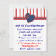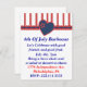 4 juillet amusant, l'invitation du parti, faite en rayures rouges et blanches au sommet avec un joli ruban et un coeur bleu et rouge. Customisez le texte de votre fête de l'Indépendance.