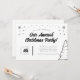 Faites rouler le ballon de Noël avec notre invitation chic et sans effort pour fêter Noël! Doté d'un design noir et blanc minimaliste, cet invitation est l'exemple du raffinement. Avec une silhouette noire dessinée à la main d'un sapin de Noël et de délicats flocons de neige, vos invités seront ravis à RSVP. Alors, laissez tomber la moufle kitsch et allez prendre une touche d'élégance cette saison !