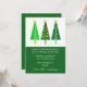 Invitation à la fête de Noël, avec au-dessus, sur un arrière - plan blanc, trois arbres de Noël verts aux allures artisanales. La moitié inférieure de l'invitation est faite en vert avec un texte blanc personnalisé prêt à être personnalisé pour votre fête de vacances.