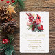 Jolie invitation de Noël faite en blanc, avec de belles oeuvres d'un cardinal rouge et des fleurs et de feuille d'or texte personnalisé. Personnalisez tous les champs de texte pour votre fête de vacances.