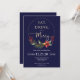 Festive Wreath Fête de Noël Invitation avec aquarelle florale et vert d'hiver sur une partie de la couronne d'or. Texte en or disant "Mange, Bois et sois Joyeux." Veuillez noter que l'or est une oeuvre d'art stimulée. Aucune feuille réelle ne sera utilisée dans cette invitation.