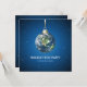 Personnalisable Invitation de Fêtes pour les écologistes avec thème de Noël écologique sur papier recyclé : planète Terre dans l'espace comme ornement de Noël sur bleu. Personnalisez-le avec votre propre texte ou customisez-le davantage si vous souhaitez ajuster la disposition ou la taille de l'invitation.