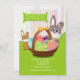 Que vous ayez une chasse aux oeufs, une fête d'anniversaire ou un brunch de Pâques, cette adorable invitation est parfaite pour l'occasion. Le arrière - plan dispose d'une motif à rayures pastel associée à une base vert printanier qui abrite une corbeille de Pâques remplie d'oeufs décorés et de deux lapins. Le défilement en haut peut être agrandi ou plus petit (+-) ou éliminé.La carte est facile à customiser avec votre libellé, police, couleur de police et choix de six types de papier.