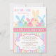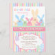 Fêtez Pâques avec cette adorable invitation de lapin ! Comprend de mignons lapins pastel avec des oeufs de Pâques sur un arrière - plan rayé.