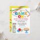 Notre invitation originale et la plus vendue pour la fête d'anniversaire Game On Arcade est l'invitation parfaite pour toute fête sur le thème du jeu avec un thème d'arcade, de laser tag ou de pizza. Cette conception présente des lettres colorées avec des jeux d'arcade amusants, des ballons et des graphiques de pizza.