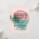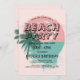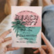 Profitez de la beauté d'un coucher de soleil tropical avec notre invitation de fête de plage estivale, conçue avec une illustration enchanteresse de palmiers et d'un coucher de soleil vibrant sur la plage. Cette invitation capture l'atmosphère sereine mais animée d'une réunion de plage, invitant vos invités à se prélasser dans les teintes chaudes d'un soleil couchant qui jette sa lueur sur l'océan.