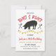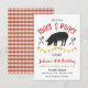 Modèle modifiable d'invitation au rôti de porc. Utilisez cette invitation amusante pour une fête de rôti de porc et de toast pour n'importe quelle occasion ! Idéal pour les remises de diplômes, les départs à la retraite et les anniversaires !