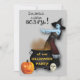 Voici une amusante invitation au costume d'Halloween ! Le front est composé d'un zombie réaliste comme une sorcière, les bras tendus sur un chaudron noir fumant. À côté du chaudron bouillant, asseyez une lanterne de valet orange et un crâne blanc éclatant. Le texte stylisé en haut dit en noir "Mange, bois, et fais peur !" Sur le chaudron se trouve un texte orange vif qui dit "à notre fête d'Halloween !" Les images et le texte sont placés sur un arrière - plan gris clair. L'arrière du invitation a le même arrière - plan gris, avec votre texte customisé en noir. C'est gentil, et facile de customiser de dire tout ce que vous voulez.