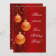 Invitation de fête avec des ornements en arrière - plan rouge foncé et en or avec tourbillons, rubans, flocons de neige et étoiles. Ajoutez facilement vos propres détails et recevez des invitations festives pour les fêtes de fin d'année.