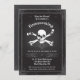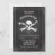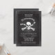 Cette invitation est idéale pour célébrer une fête d'Halloween sur le thème du Pirate. Il présente un design vintage avec un crâne et des os sur une combinaison de couleurs noir, gris et blanc. Un cadre orné entoure la carte. C'est l'invitation parfaite à une soirée costumée pour adultes. La formulation est faite dans les discours pirates. Ajoutez vos propres détails d'événement.