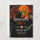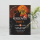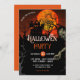 Préparez-vous à invitation vos invités à une fête d'Halloween avec une invitation en noir et orange avec un éffrayant hanté arrière - plan de maison et typographie personnalisée blanche et orange.