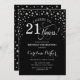 Invitation de fête du 21e anniversaire. Design élégant avec fausse parties scintillant argent et noir. Salutations à 21 ans ! Message-moi si vous avez besoin d'une personnalisation plus poussée.