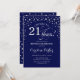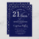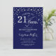 Invitation de fête du 21e anniversaire. Design élégant avec fausse parties scintillant argent et bleu marine. Salutations à 21 ans ! Message-moi si vous avez besoin d'une personnalisation plus poussée.