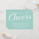 Cette jolie invitation à la fête du 25e anniversaire de mariage comporte la phrase "À la santé de vingt-cinq ans" écrite en calligraphie blanche sur un joli fond bleu.