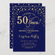 Invitation à la fête du 50e anniversaire. Elégant design avec fausse parties scintillant or et bleu marine. Bonjour à 50 ans ! Message-moi si vous avez besoin d'une personnalisation plus poussée.