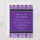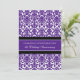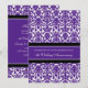 Carton d'invitation pour une fête du 5e anniversaire de mariage avec un motif damassé floral moderne élégant, couleur aubergine foncé, violet, noir et blanc, délicat et contemporain. Personnalisable avec les détails de votre fête.