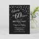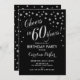 60th Birthday Party Invitation Design élégant en fausse parties scintillant argent et noir. Salutations à 60 ans !