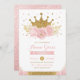 Personnalisez facilement et rapidement cette jolie invitation de fête d'anniversaire de princesse florale et pailletée. Elle comporte de belles fleurs aquarelles, une couronne pailletée or et un texte en écriture cursive.
