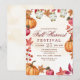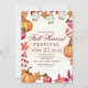 Invitation à la fête du festival de récolte d'automne et de remerciement entre amis avec des feuilles qui tombent, des pommes, des lanternes et des citrouilles dans un style rustique