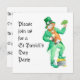 Une carte d'invitation carré pour une fête de la Saint Patrick, avec un motif leprechaun.
