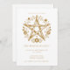 Un pentacle en bois rustique, entrelacé de fleurs vibrantes, est au cœur de cette invitation de fête de célébration du solstice avec une typographie dorée. Un style bohème rustique pour votre célébration de Yule.