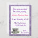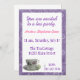 La jolie invitation présente une tasse à thé fleurie au fond de l'invitation et est entourée d'une jolie buvette violette. L'information de la fête est présentée dans un violet et rose au-dessus de la tasse de thé. Cette belle invitation fera le bonheur de tous les clients.